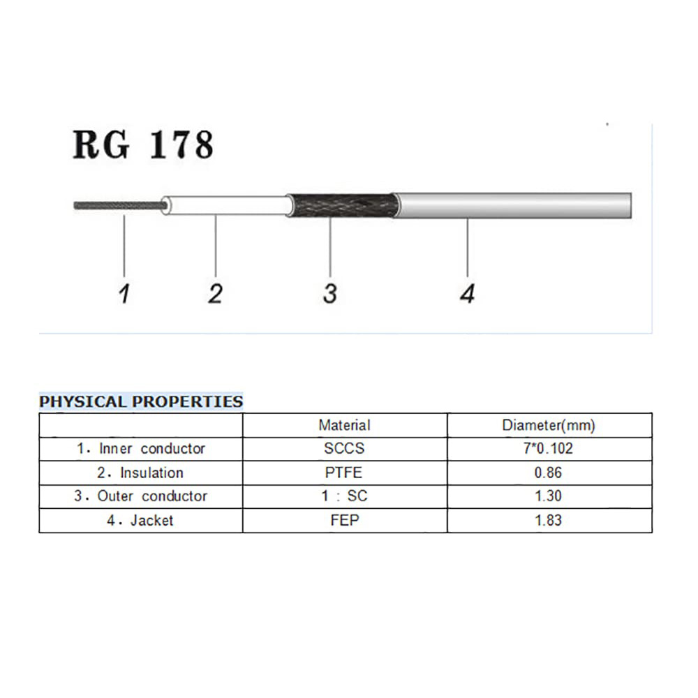 類(lèi)型:RG178同軸電纜,帶MMCX公接頭至RP-SMA母接頭